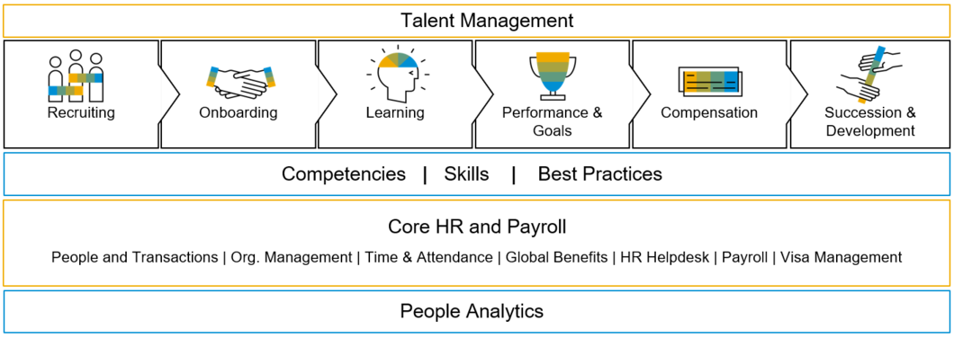 3. Talent Management – which includes solutions for recruiting, onboarding, learning, performance management, compensation, and more